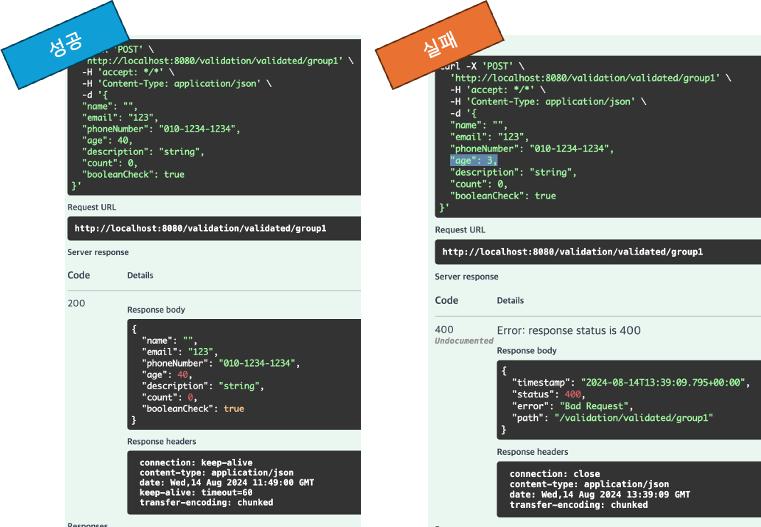 - 따라서, age 필드를 제외한 다른 필드의 값이 유효하지 않더라도 성공으로 처리되는 것을 확인할 수 있다.