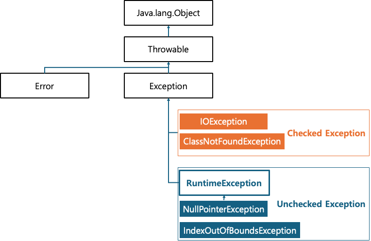 1. Error & Exception2. Exception Class 구조3. Exception 처리 방법 [Error & Exception]Error / 에러JAVA 에서 Error 는 JVM에서 발생시키는 것으로, 애플리케이션 코드에서 처리할 수 있는 부분이 거의 없다.대표적으로, OutOfMemory / StackOverFlow 등이 에러에 속하며, 에러가 발생한 시점에 처리하기 보다는 미리미리 애플리케이션의 코드를 살펴보며 에러가 발생하지 않도록 예방하여 원천적으로 차단해야 한다. Exception / 예외Exception 은 입력 값의 처리가 불가능하거나 참조된 값이 잘못된 경우 등, 애플리케이션이 정상적으로 동작하지 못하는 상황을 의미한다.코드 설계 및 테스트 단계에서 개발자가 직접 처리할..